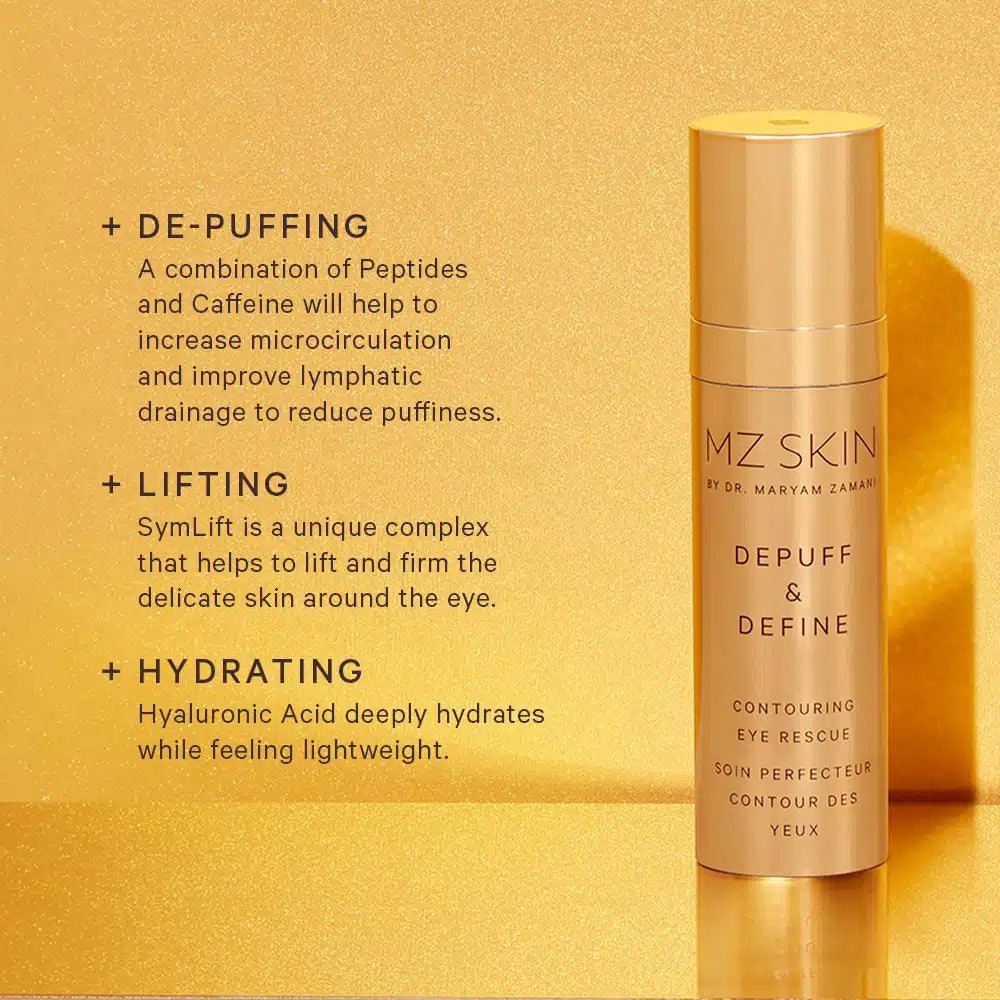 Depuff and Define (15ml) contains a high potency caffeine and peptide complex to counter fluid and fatty deposits that can lead to puffiness and eye bags.