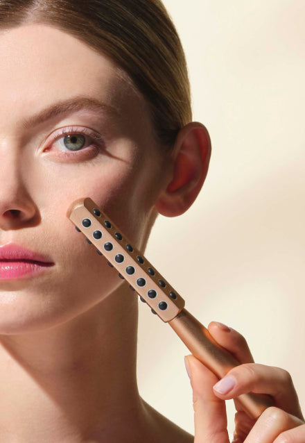 Sculpting facial roller made with Germanium to contour, depuff and improve skin radiance