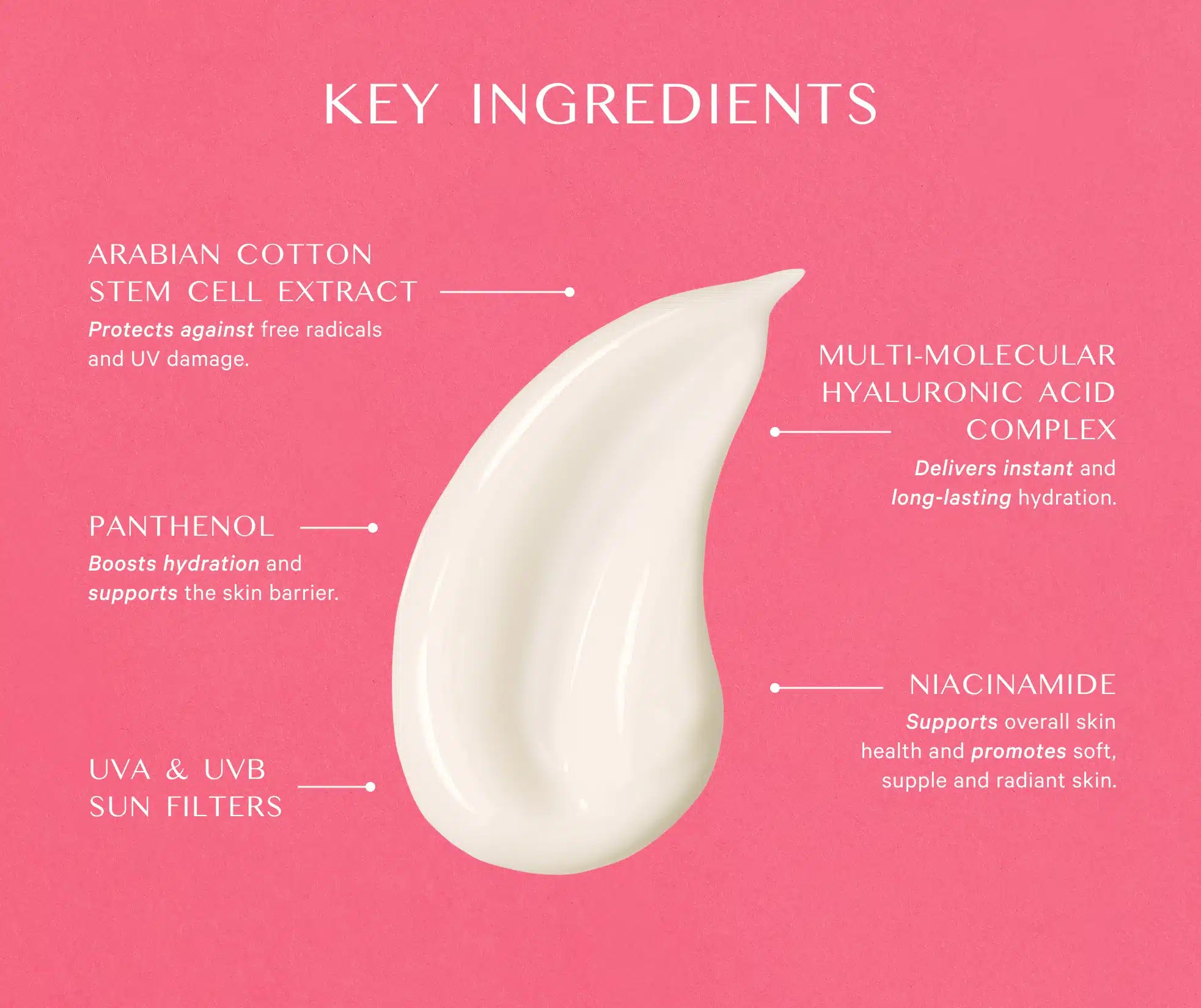 UVB/UVA protection, fine lines, dehydration, pigmentation, dullness, barrier strength & free-radical damage